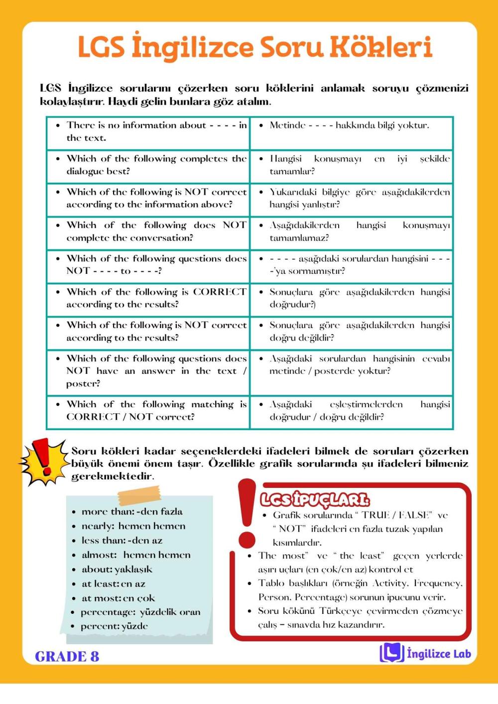 LGS soru kökleri ile ilgili çalışma kağıdı