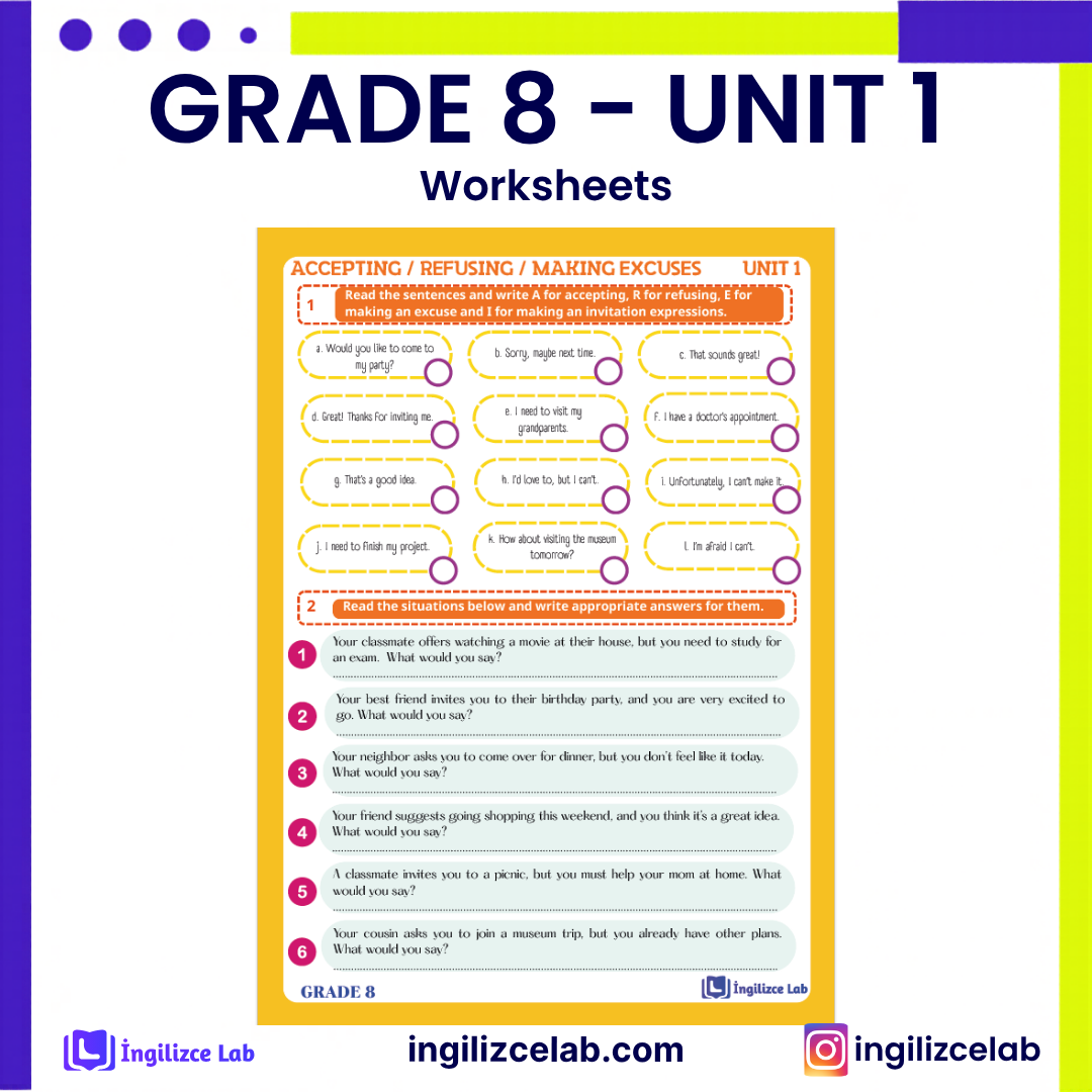 Accepting & Refusing & Making Excuses etkinlikleri içeren çalışma kağıdı