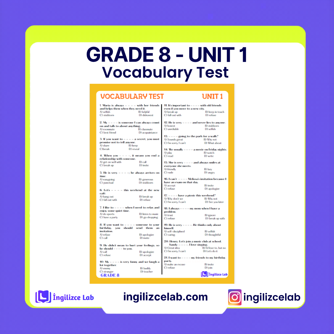1. ünite kelime testi